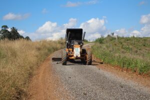 A Prefeitura de Zortéa está realizando o britamento da estrada que liga à comunidade da Volta Grande, uma importante via que dá acesso ao município de Machadinho.